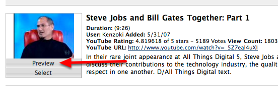 4. To Select a Video, Click Select