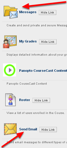 NOTE: You may want to add the Send Email tool as a separate link to your Course Menu. (See Adding New Links to the Course Menu)