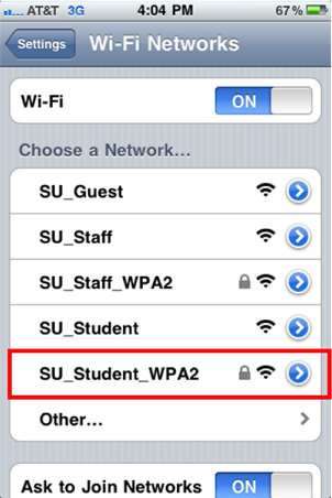 Select either SU_Student_WPA2 or SU_Staff_WPA2